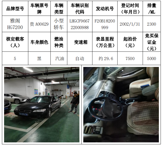 輝騰轎車1輛、雅閣轎車1輛、別克小型客車1輛、途勝越野車1輛、長城牌小型越野客車1輛、雪佛蘭小型客車1輛、本田奧德賽小型普通客車1輛,共計7輛車。