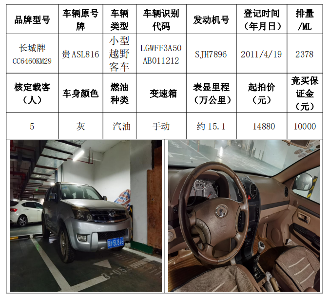 拍品編號5:長城牌CC6460KM29小型越野客車一輛